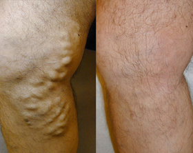 The images below illustrate varicose vein pictures from before and after EVLT